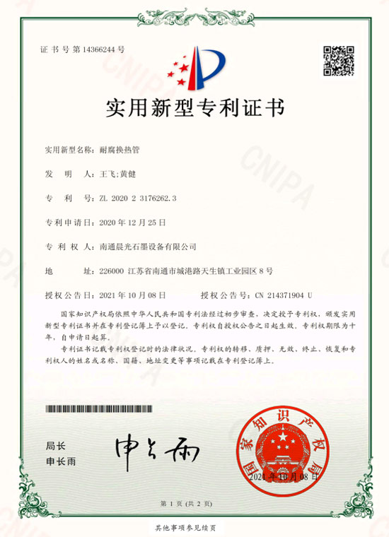 上一條:實(shí)用新型專(zhuān)利 :石墨換熱器 專(zhuān)利號(hào):ZL 2019 2 1407837.2